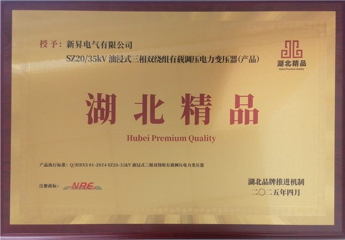 4月10日,在第二届“湖北精品”发布会上,新昇电气有限公司SZ20/35kV油浸式三相双绕组有载调压电力变压器产品成功被认定为“湖北精品”。