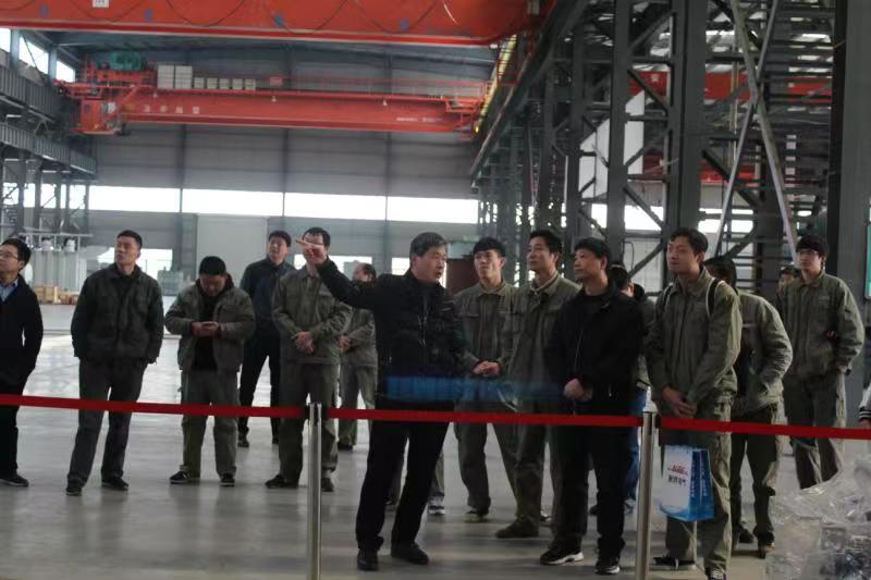 在公司产品陈列室,总经理秦卫卫简要介绍了公司的发展历程、科研实力及产品销售情况,并就他们关心的技术问题进行答疑。随后,秦总率市场商务部等工作人员陪同来宾深入车间实地了解变压器生产全过程和变压器试验站作业,并就有关技术问题进行了交流。