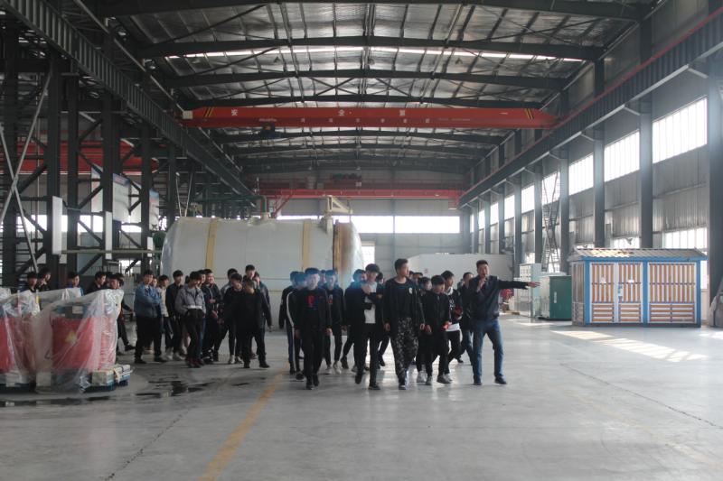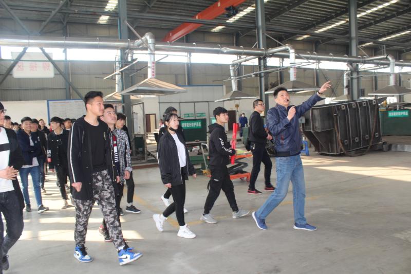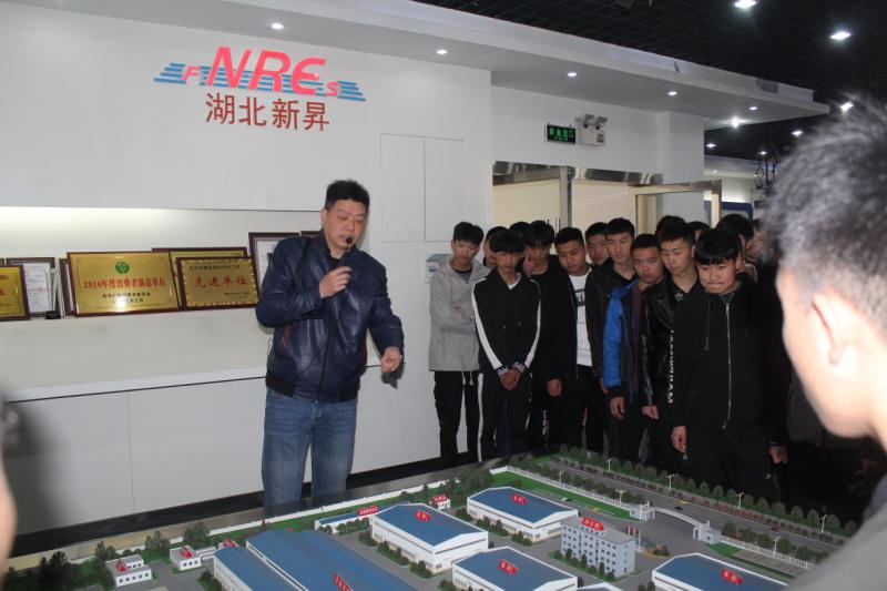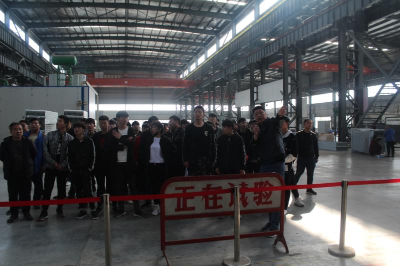 在新昇公司,总经理助理刘俊逐一对铁心、油箱、线圈、总装等车间以及试验站等生产工艺流程进行现场讲解。学校机加工、数控、焊接等专业的学生适时地提问,工人师傅们一一作答。随后师生们一起在四楼大会议室观看了企业文化宣传片;党建指导员尚军同志就公司的前世今缘、所获荣誉、行业特征、发展瓶颈及未来愿景等方面与师生们作深入的交流互动,并勉励大家要不驰于空想、不骛于虚声,在平凡的岗位上拾级而上,成就一番事业。