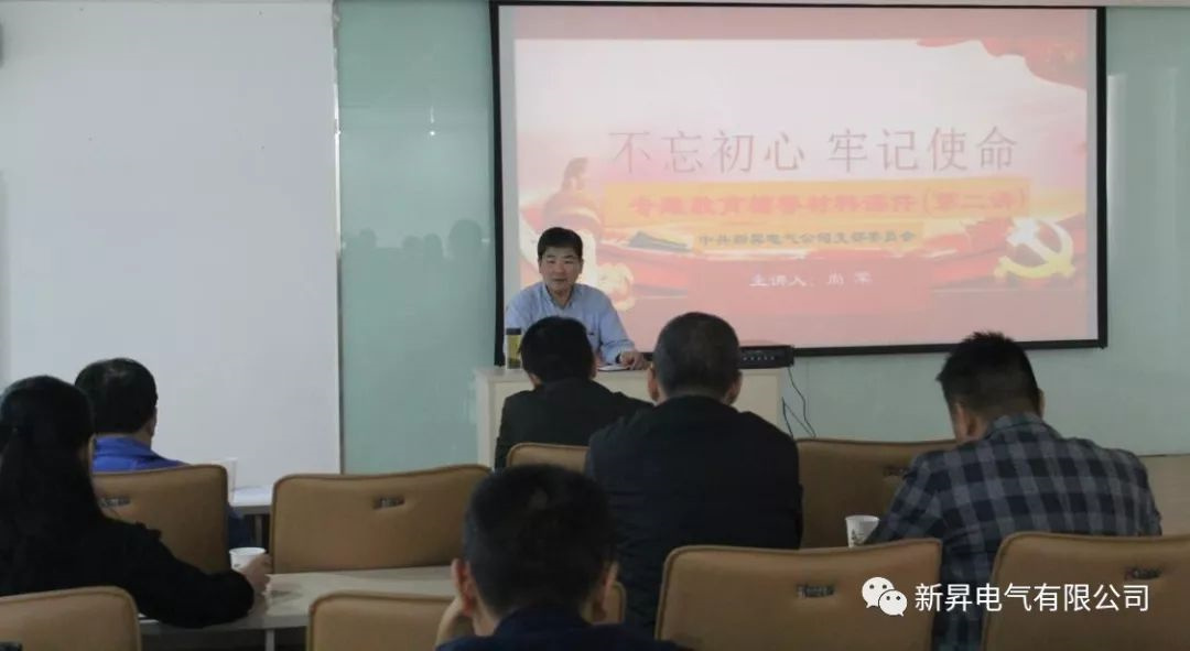 10月25日下午,新昇电气公司四楼国歌雄壮、誓言铿锵、课声朗朗……这是公司党支部在这里举办“不忘初心、牢记使命”专题教育主题党日活动。