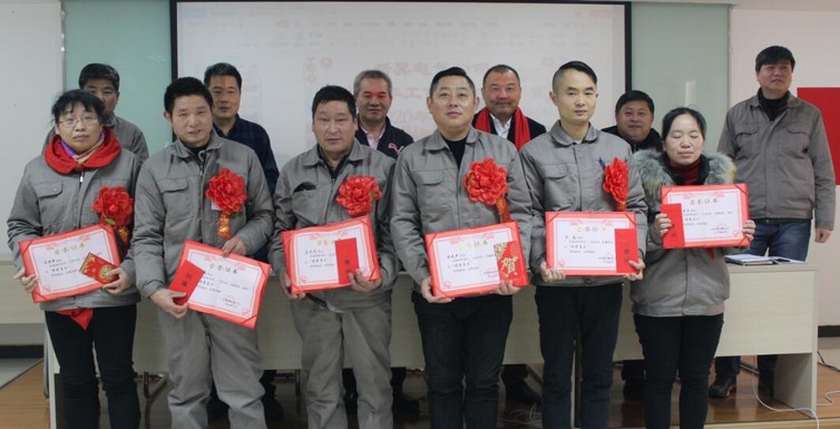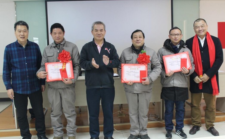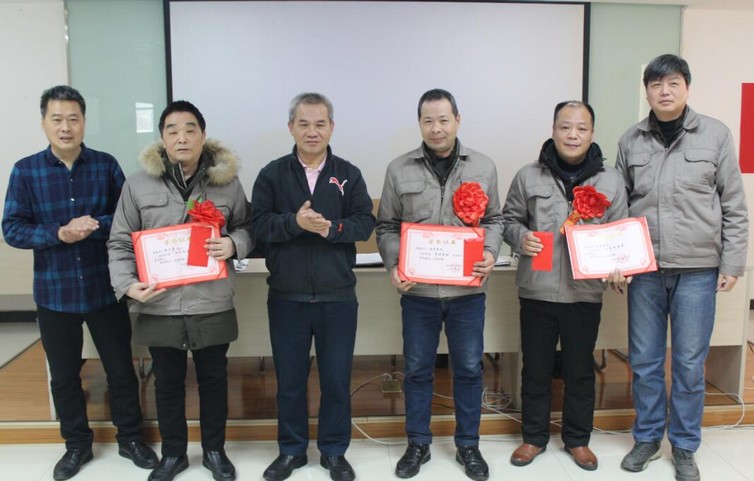 (董事长等公司领导为“2019年度工艺改进奖”颁奖)